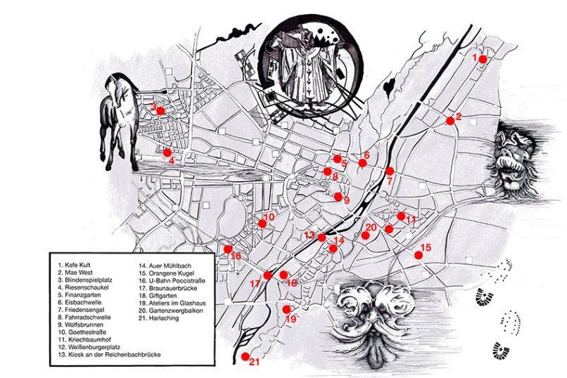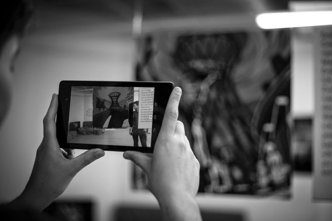 „One Picture is Worth Ten Thousand Words“ – In direct confrontation suggests the vernacular the connoisseurs an objective added value of visual displays relative to the text. In project 100 WORD PILGRIMAGE texts and images don’t stand in competition, but are mutually enriching each other as art forms. Places of the city have been selected by the artists and interpreted poetic or visual. Each text was 100 words long. In the second step, either the illustration or the lyrics inspired either the authors or the illustrators to follow up the first part of the art piece. With all the work assembled, our team of animators set to work, bringing these words and static images to life. We created a window into Munich through the eyes of its inhabitants. This window was in fact the screen of any phone or tablet onto which the augmented reality app, Aurasma, had been downloaded. Using sophisticated image recognition technology combined with an intuitive interface, Aurasma enabled us to create an interactive layer to our work, inviting the audience to step into the pictures and hear the stories spoken to them out loud.